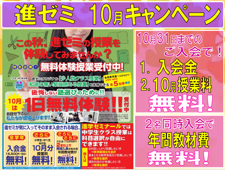 少人数クラス指導・個別指導で教科選択ができる塾なら進学ゼミナールへ!