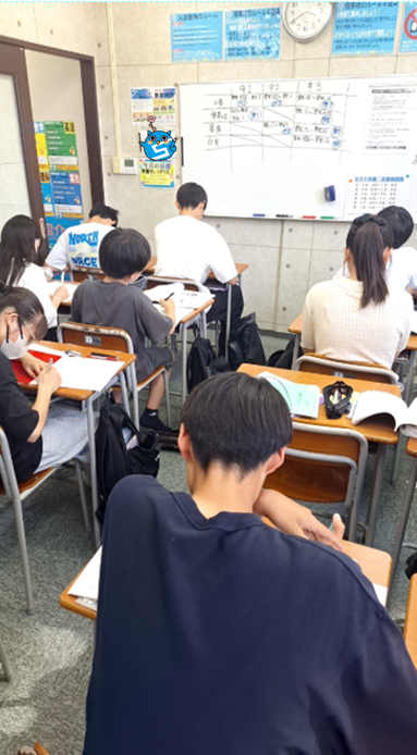 右の写真が実際の様子です。どの生徒も集中して頑張ってくれていますね!!🔥(新マスコットキャラクターのサニィも見守ってくれています!)