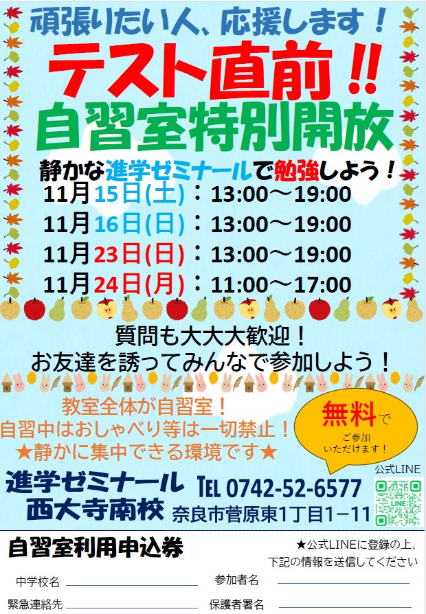 進学ゼミナールでは、無料で自習室を解放しています!!!!!
