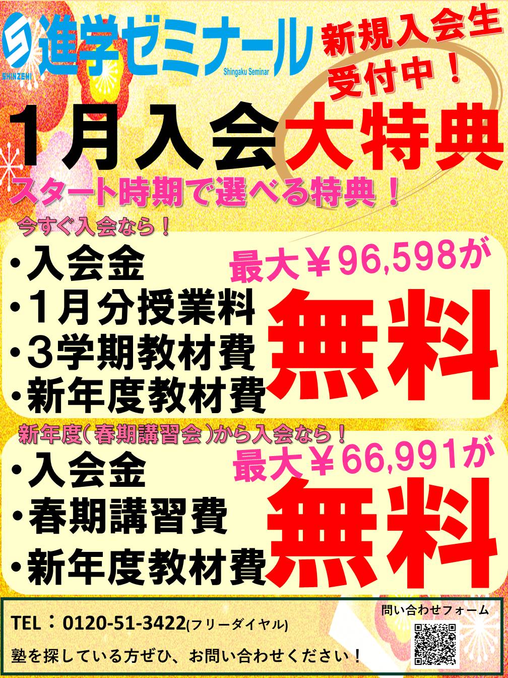 そのような方に進学ゼミナールでは、現在早期入会がお得な特大キャンペーンを実施しています!