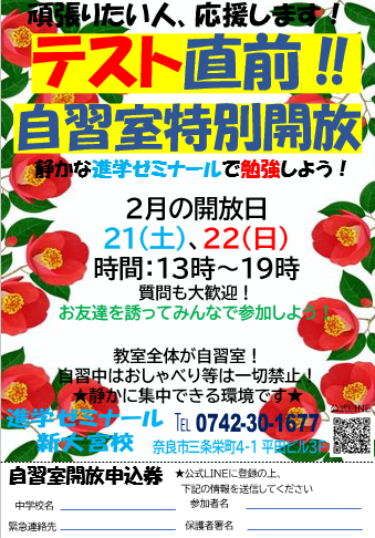 学年末テストで結果を出して、新年度いいスタートが切れるように頑張りましょう。