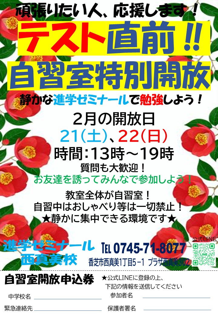 また、定期試験前の土曜日・日曜日は自習室を開放!