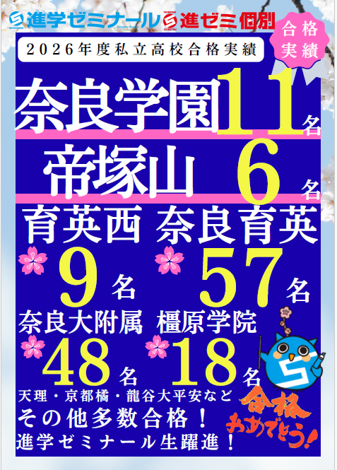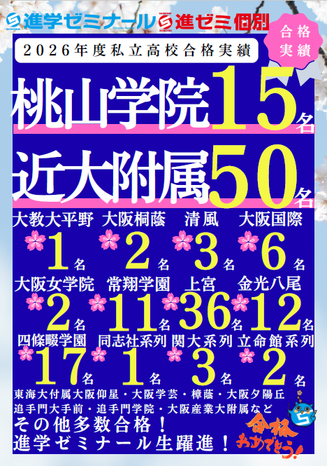 【進学ゼミナール生駒校】👏速報!!私立高校入試結果👏
