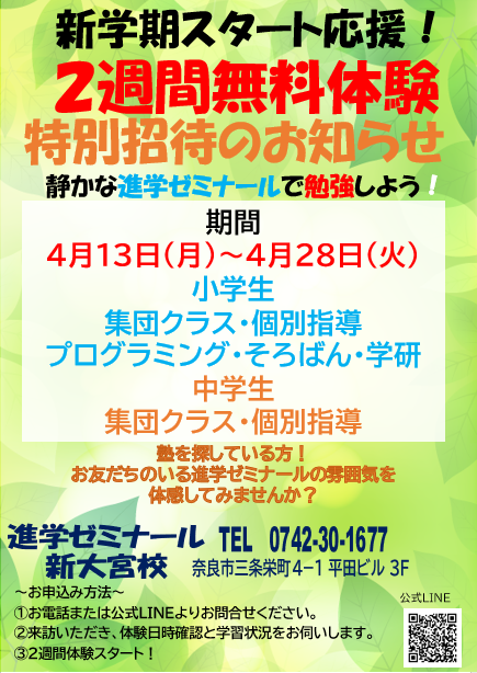 新年度から塾をお考えの皆様、是非このキャンペーンご活用ください!