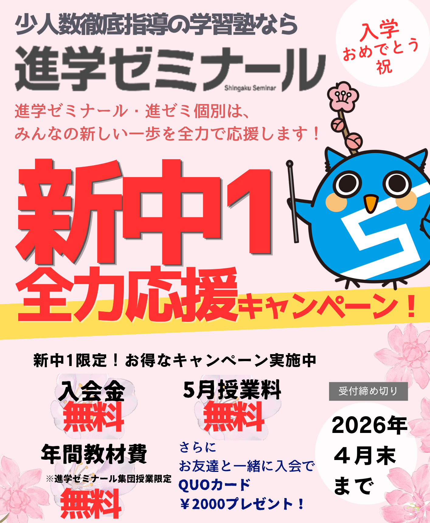 新中1全力応援キャンペーン実施中