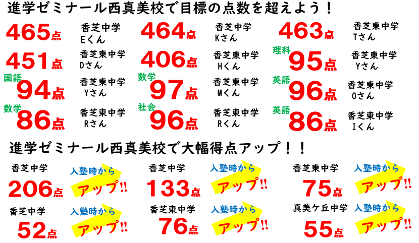 香芝東中 中2 Iさん 5教科 36点UP などなど
